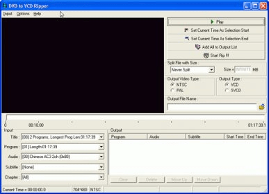 DVD to VCD Ripper also supports preview of your DVD before ripping, you can play or seek the movie easily. You can also control the output movie type by choosing from NTSC or PAL and VCD or SVCD. For your convince to burn CD, it also supports split file automatically.
